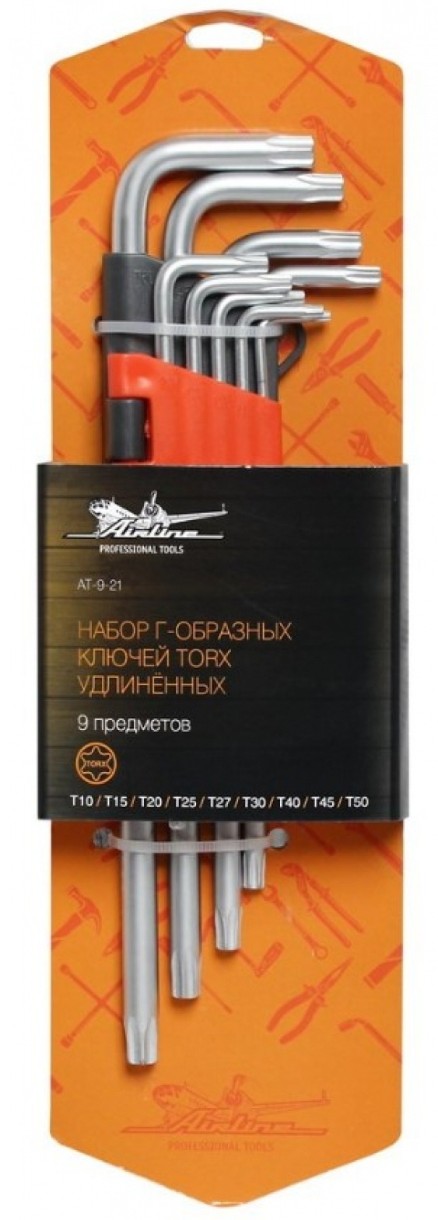 Набор Г-образных ключей TORX с отв. удлинённых 9 предметов Airline AT-9-21 упрощает работу автомеханика и работника сервиса. Комплект выполнен из прочной стали с защитным покрытием.