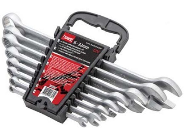 Набор ключей комбинированных для работы с любыми разновидностями шестигранного крепежа. Изготовлены из высококачественной инструментальной стали, легированной хромом и ванадием. В наборе находятся 8 ключей размерами от 6-22 мм. Стержень ключа удлинен для облегчения работы и обеспечивает большую силу завинчивания.