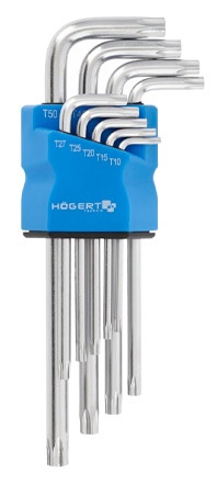 Набор ключей Torx Г-образных ключей Hoegert HT1W830 - Изготовлены из высококачественной легированной стали S2, что гарантирует максимальную прочность. Устойчивы к деформации и скручиванию. Благодаря форме в виде буквы «L» с одним длинным и одним коротким плечом можно работать в труднодоступных местах. Удлиненный профиль, используя эффект рычага, позволяет работать с повышенным усилием. Изготовлены в соответствии с DIN 911.