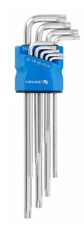 Набор ключей Torx Г-образных ключей Hoegert HT1W831 - Изготовлены из высококачественной легированной стали S2, что гарантирует максимальную прочность. Устойчивы к деформации и скручиванию. Благодаря форме в виде буквы «L» с одним длинным и одним коротким плечом можно работать в труднодоступных местах. Удлиненный профиль, используя эффект рычага, позволяет работать с повышенным усилием. Изготовлены в соответствии с DIN 911.