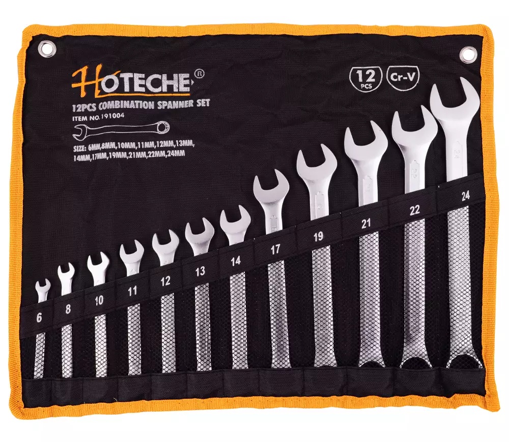 Набор комбинированных ключей HOTECHE 191004 охватывает несколько размеров, подходят для работы с крепежами в различных условиях.
