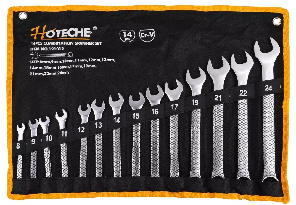 Набор комбинированных ключей HOTECHE 191012 охватывает несколько размеров, подходят для работы с крепежами в различных условиях.