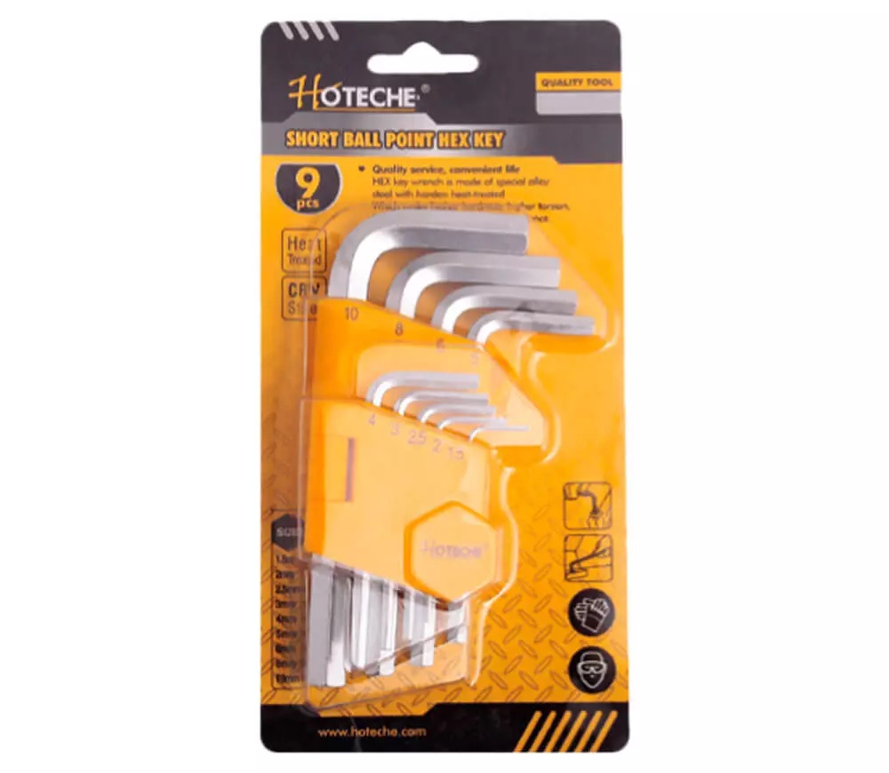 Набор шестигранных ключей HOTECHE 260109. Ключи изготовлены из высокопрочной легированной стали. Специальное покрытие обеспечивает надежное скольжение. Ключ характеризуется высокой прочностью и долговечностью. Предназначен для сервисных и механических мастерских как и для повседневной жизни.