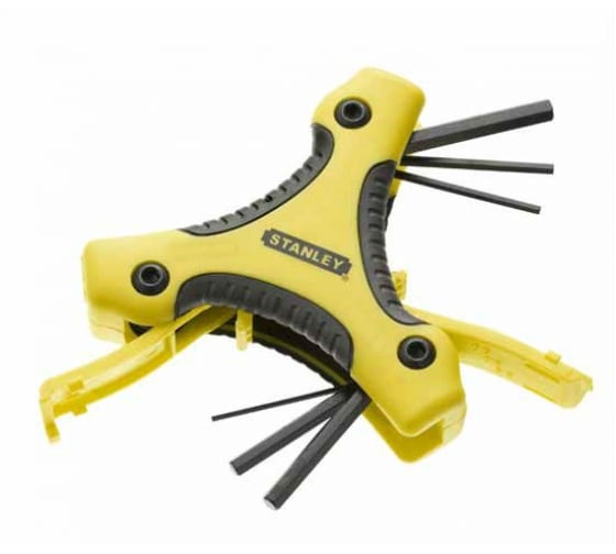 Набор шестигранников Stanley Triangle 0-95-935 включает 9 ключей разных размеров, которые складываются в пластиковый корпус. Корпус играет роль удобной рукоятки, имеет резиновые накладки. Набор обладает повышенным рабочим ресурсом за счет использования качественной стали при изготовлении каждого ключа.