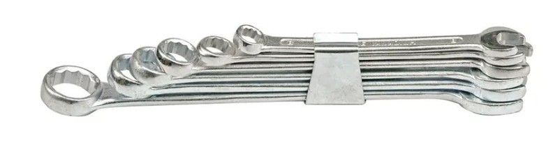Набор комбинированных ключей 51560 предназначен для использования в профессиональных мастерских при различных нагрузках. На одном конце ключа расположена рожковая, а на другом - накидная головка. Изготовлен из углеродистой стали. Соответствует стандартам ISO и DIN.