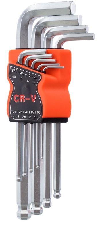 Набор имбусовых ключей предназначен для монтажа/демонтажа резьбовых соединений. Ключи сочетают в своей конструкции две рабочие части. Одна для увеличения крутящего момента, вторая для увеличения скорости сборки/разборки. Ключи изготовлены из хромованадиевой стали CrV 6150, она отличается высокой прочностью и коррозионной стойкостью. Шаровидный наконечник позволяет работать с крепежом под углом до 30°, повышая эффективность работ в ограниченном пространстве. Надежный холдер для хранения ключей.