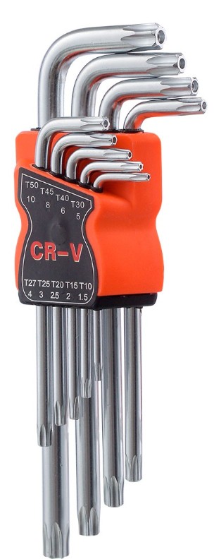 Набор имбусовых ключей предназначен для монтажа/демонтажа резьбовых соединений. Ключи сочетают в своей конструкции две рабочие части. Одна для увеличения крутящего момента, вторая для увеличения скорости сборки/разборки. Ключи изготовлены из хромованадиевой стали CrV 6150, она отличается высокой прочностью и коррозионной стойкостью. Ключи Torx имеют самый высокий момент затяжки, по сравнению с прочими шлицами. Ключи имеют центровочное отверстие, которое гарантирует совместимость с крепежом Secure Torx. Надежный холдер для хранения ключей.
