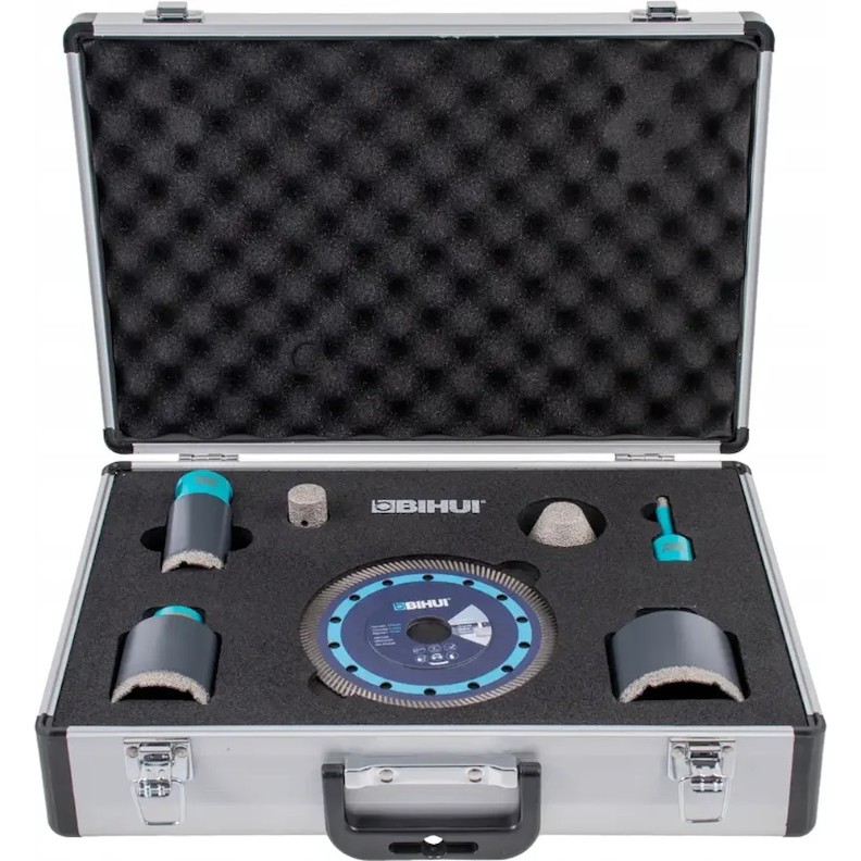 Набор BIHUI DBDFC5 — это топовое решение для обработки твердых материалов, таких как керамогранит, гранит и мрамор. Благодаря технологии вакуумного спекания (VRC), частицы алмаза прочно спаяны с металлическим корпусом, позволяя использовать алмазный слой до полного истирания. Это обеспечивает превосходную скорость сверления и долговечность, в разы превышающую гальванические коронки.