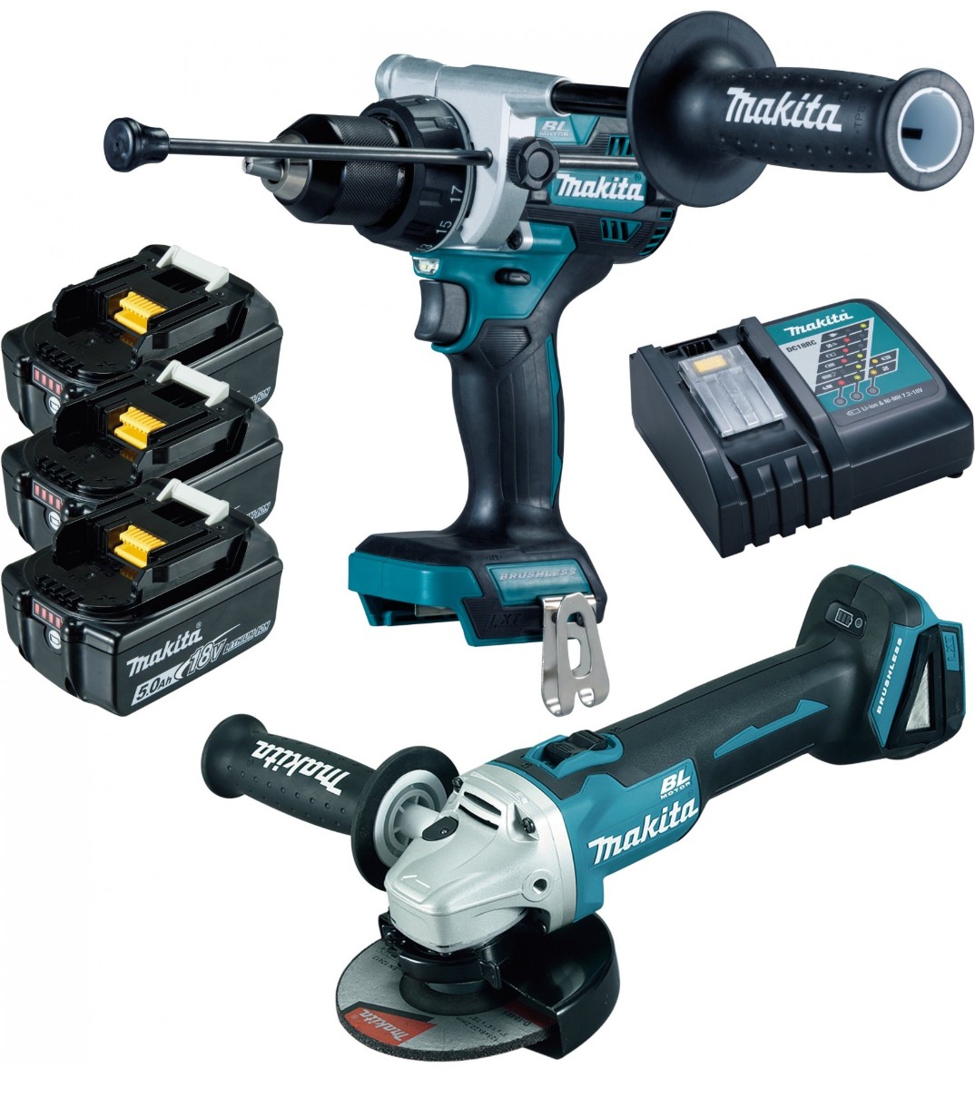 1.Угловая шлифмашина Makita DGA506Z - предназначена для шлифования и зачистки поверхностей, а также для резания деталей из различных материалов. Фиксатор шпинделя обеспечивает быструю и лёгкую замену оснастки. Наличие дополнительной рукояти гарантирует удобный хват при эксплуатации. Она рассчитана на эксплуатацию в местах, в которых отсутствует доступ к электросети, поэтому во многих случаях данное устройство практически незаменимо. Она может устанавливаться в двух положениях. Инструмент оснащен кожухом, защищающим пользователя от искр и пыли.