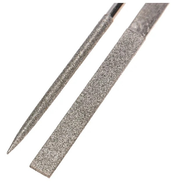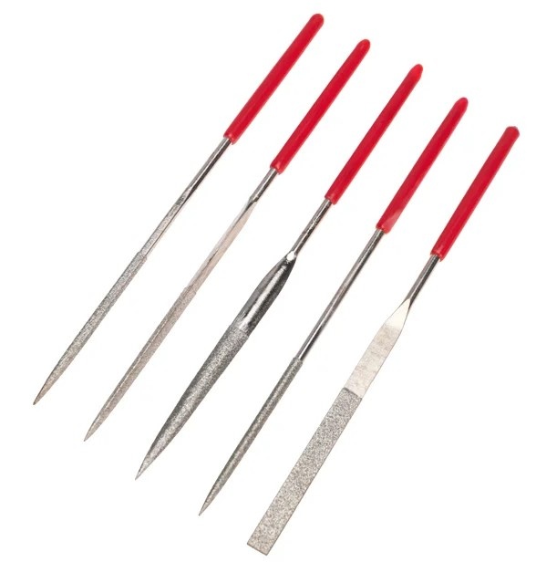 Набор надфилей с напылением из алмазной крошки применяется для мелких слесарных работ с особо твёрдыми материалами: металлом, керамической плиткой, стеклом и др.