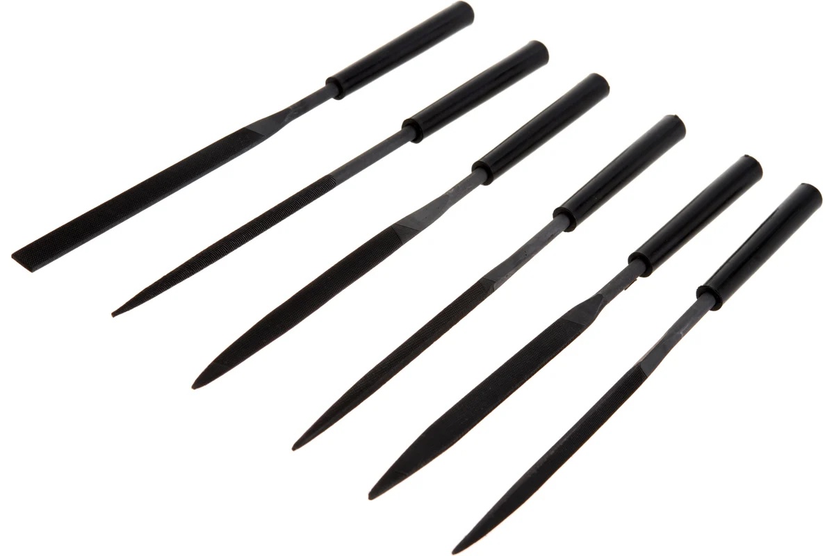 Набор надфилей Stanley 6 шт. (0-22-500) — это комплект из шести миниатюрных напильников для точной обработки мелких деталей из металла, дерева или пластика. Длина рабочей части — около 100 мм, рукоятки эргономичные, пластиковые. Надфили различной формы (плоский, круглый, треугольный и др.) изготовлены из прочной стали, подходят для ювелирных, слесарных и хоббийных работ.