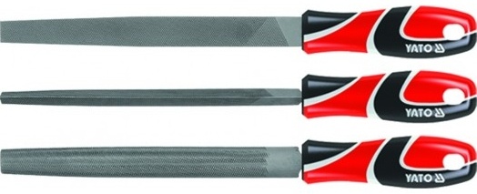 Набор напильников YATO YT-6237 включает в себя три напильника по металлу. Инструменты изготовлены из высоколегированной стали марки T12. Они гарантируют качественную обработку поверхности и прослужат на порядок дольше аналогов