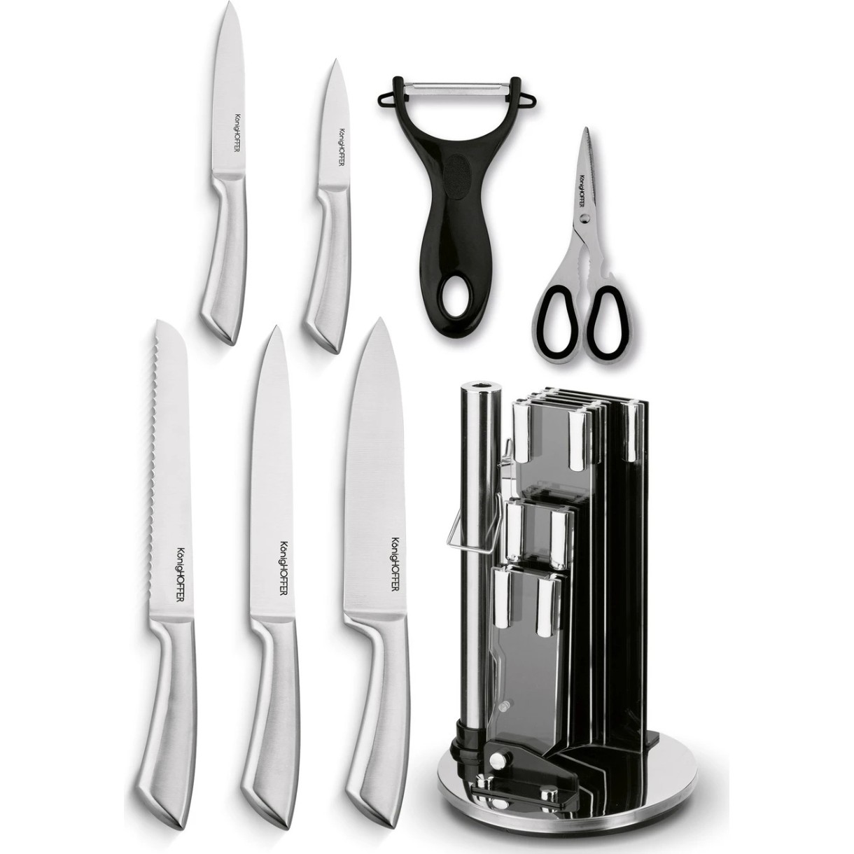 Последний элемент — это ножницы, ведь в кухне никогда не хватает упаковок, которые нужно открыть. Всё размещено на стабильной и оригинальной акриловой подставке (которая вращается!). Так что доработай каждое блюдо до мельчайших деталей и создай идеальное кулинарное произведение!