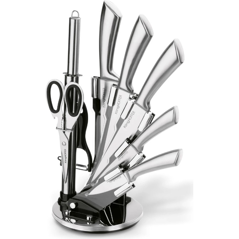 В комплекте из 9 стальных ножей Konighoffer Holly ты также найдешь точилку, чтобы лезвия всегда были в идеальной форме даже во время кулинарного марафона. В комплекте идет и овощечистка, которая ускорит процесс получения отличного результата. Безопасно использовать её сможет даже ребенок, очищая овощи или фрукты.