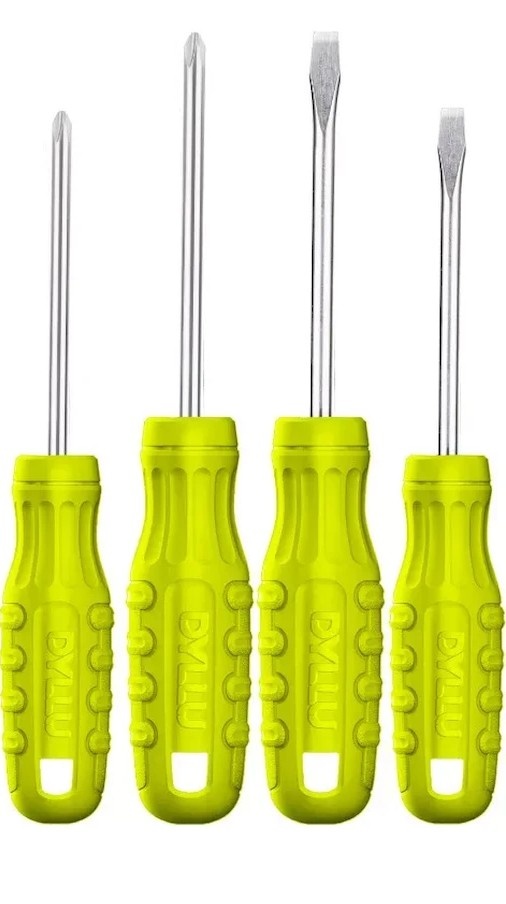 Набор отверток DYLLU DTSS2204 включает четыре наиболее часто используемых отвертки — две шлицевые и две крестовые. Изготовлены из прочной стали 40CR, что гарантирует надежность и долговечность инструмента. Эргономичная форма ручек и круглый стержень обеспечивают комфорт при работе.