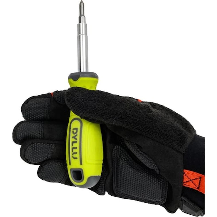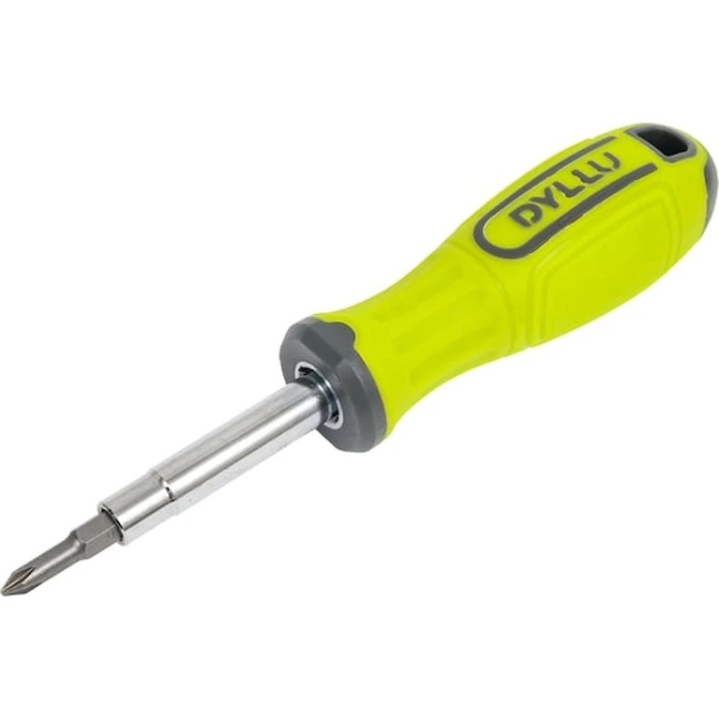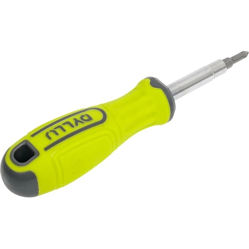 Многофункциональная отвертка 6-в-1 с уникальным дизайном. В комплект входят две двусторонние биты (PH1+SL5, PH2+SL6), две насадки (6 мм и 8 мм) и сменная ручка. Лезвия изготовлены из хромованадиевой стали (Cr-V), что гарантирует устойчивость к коррозии и механическим нагрузкам. Компактный размер и универсальность делают эту отвертку идеальной для широкого спектра задач.
