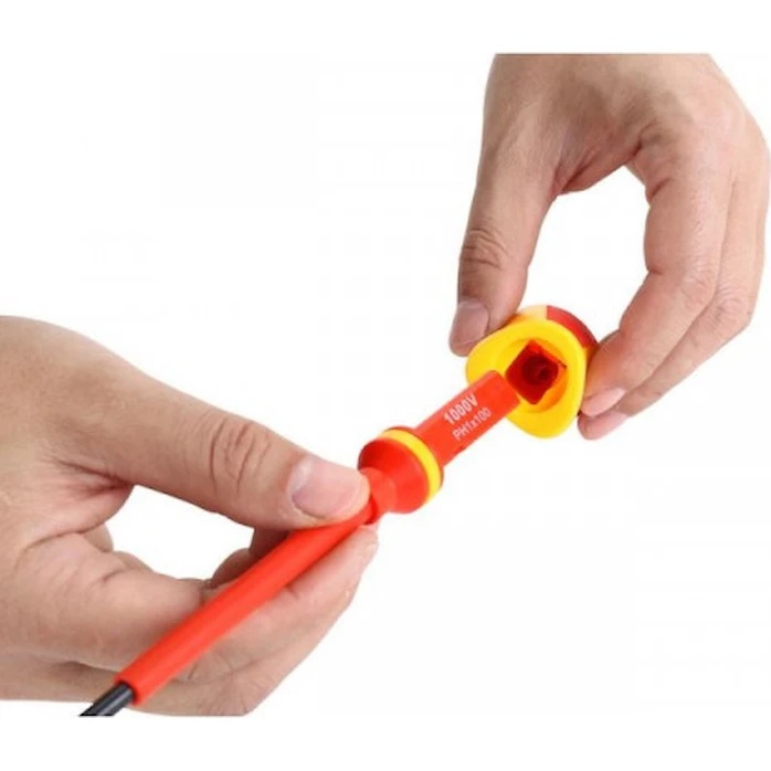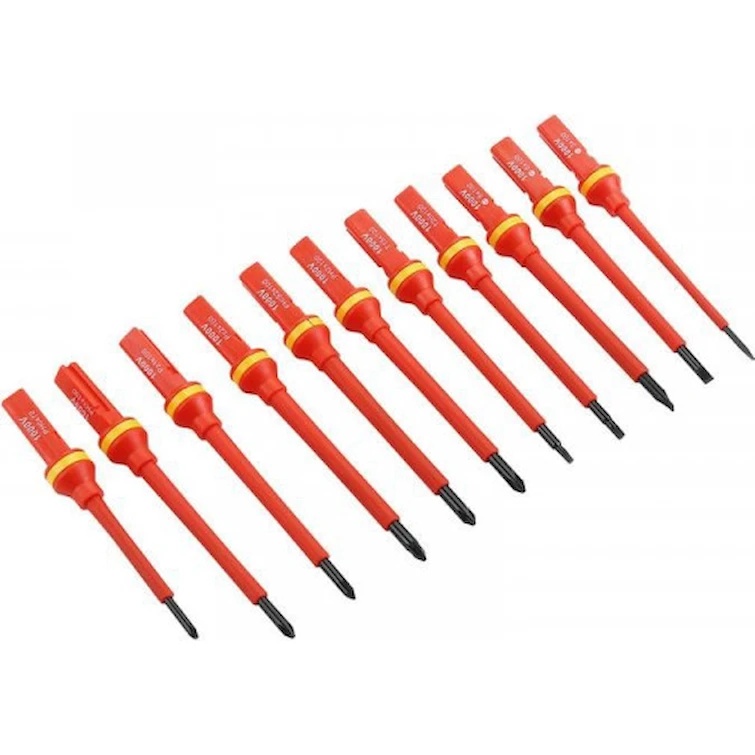 Полная диэлектрическая защита: Изолированные стержни и рукоятки обеспечивают безопасную работу с оборудованием под напряжением до 1000 В (соответствует стандарту VDE 1000V).