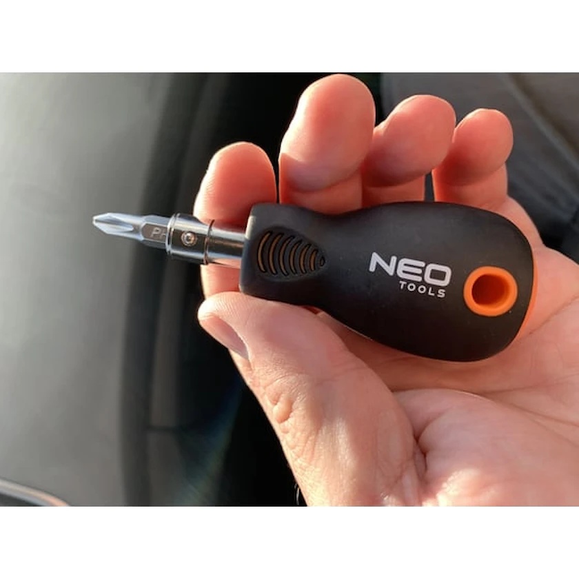 Универсальная отвертка NEO крестовая/шлицевая 6.0 ммxPH2 04-201 подойдет для работы с крепежом в ограниченных условиях.