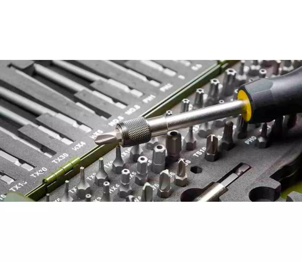 - в набор входят: отвертка с подпружиненным адаптером для бит 1/4", переходник, магнитный держатель бит, Y-адаптер, 25 мм биты (TTX5-TTX40, HX2-HX8, TW1 - TW5, SQ00, SQ01, SQ02, SQ03, C1, C2, C3, вилочные 4-12, SL3.0, SL5.5, PH0-PH2, PZ1, PZ2, XZN5, XZN6, XZN8, TS6, TS8, TS10, HX5/64" - HX5/32"), 80 мм биты (TTX10-TTX30 HX4, HX5, вилочные 6 и 8, SL3.0, SL5.5, PH1, PH2, TW1, TW2, TW3).