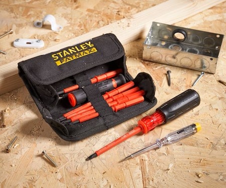 Набор многоразрядных отверток STANLEY® FATMAX® VDE, состоящий из 10 предметов, предлагает отличное соотношение цены и качества. В него входят отвертки с насадками PH1, PH2, PZ1 и PZ2, а также сетевой тестер (125-250 В) и прочный компактный чехол для удобной переноски и хранения.