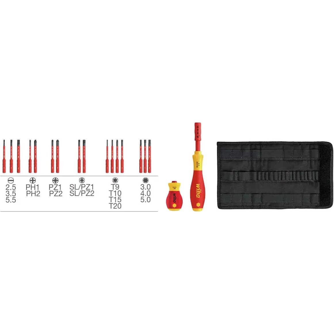 Для работы в различных местах, таких как строительные площадки, солнечные электростанции и электрические шкафы, требуются винты с различными профилями. Набор отверток slimVario® с насадками slimBits подходит для всех стандартных профилей винтов и поэтому отличается гибкостью в использовании. Эти инструменты для электриков надежно и аккуратно хранятся * в прочной сумке и идеально подходят для использования в поездках. Набор из 9 инструментов обеспечивает оптимальную экономию места благодаря комплексной системе сменных насадок. Благодаря технологии Wiha slimTechnology, лезвия slimBit, входящие в комплект, стали на 33 % тоньше и поэтому * легко дотягиваются до низко расположенных винтов и пружинных элементов. При использовании этих тонких лезвий с укороченной рукояткой винты можно без труда дотягиваться даже в ограниченном пространстве. Длинная рукоятка используется для низко расположенных винтов и большей передачи силы. Каждый инструмент в наборе прошел индивидуальные испытания в соответствии с международным стандартом IEC 60900, что позволяет пользователям безопасно работать с токоведущими частями напряжением до 1000 В переменного тока. 75-миллиметровые slimBits совместимы со всеми продуктами семейства Wiha ElectricVario.