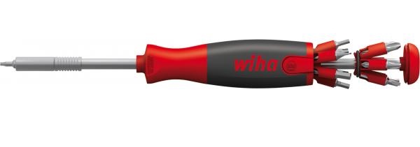 Рукоятка SoftFinish эргономична, многокомпонентная, с защитой от скатывания, а выдвижной магазин позволяет быстро извлекать биты нажатием кнопки. Держатель ClicFix надежно фиксирует биты благодаря механической блокировке. Инструмент идеален для универсального применения в быту и профессиональной работе, заменяя несколько отверток и экономя место. Вес — около 120 г.