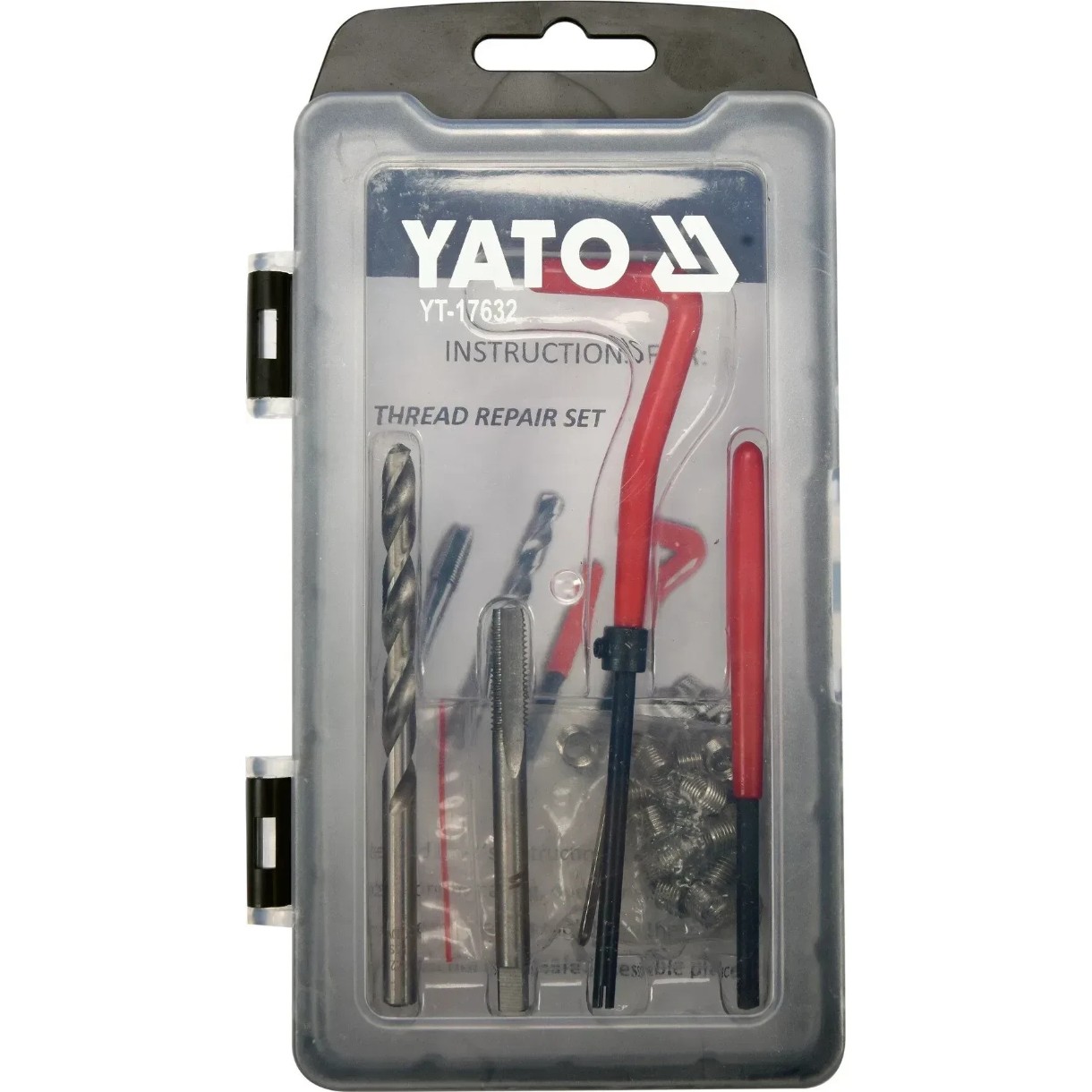 Набор для восстановления резьбы YATO YT-17632 предназначен для замены сломанных нитей на новый. Элементы набора изготовлены из прочной нержавеющей стали.