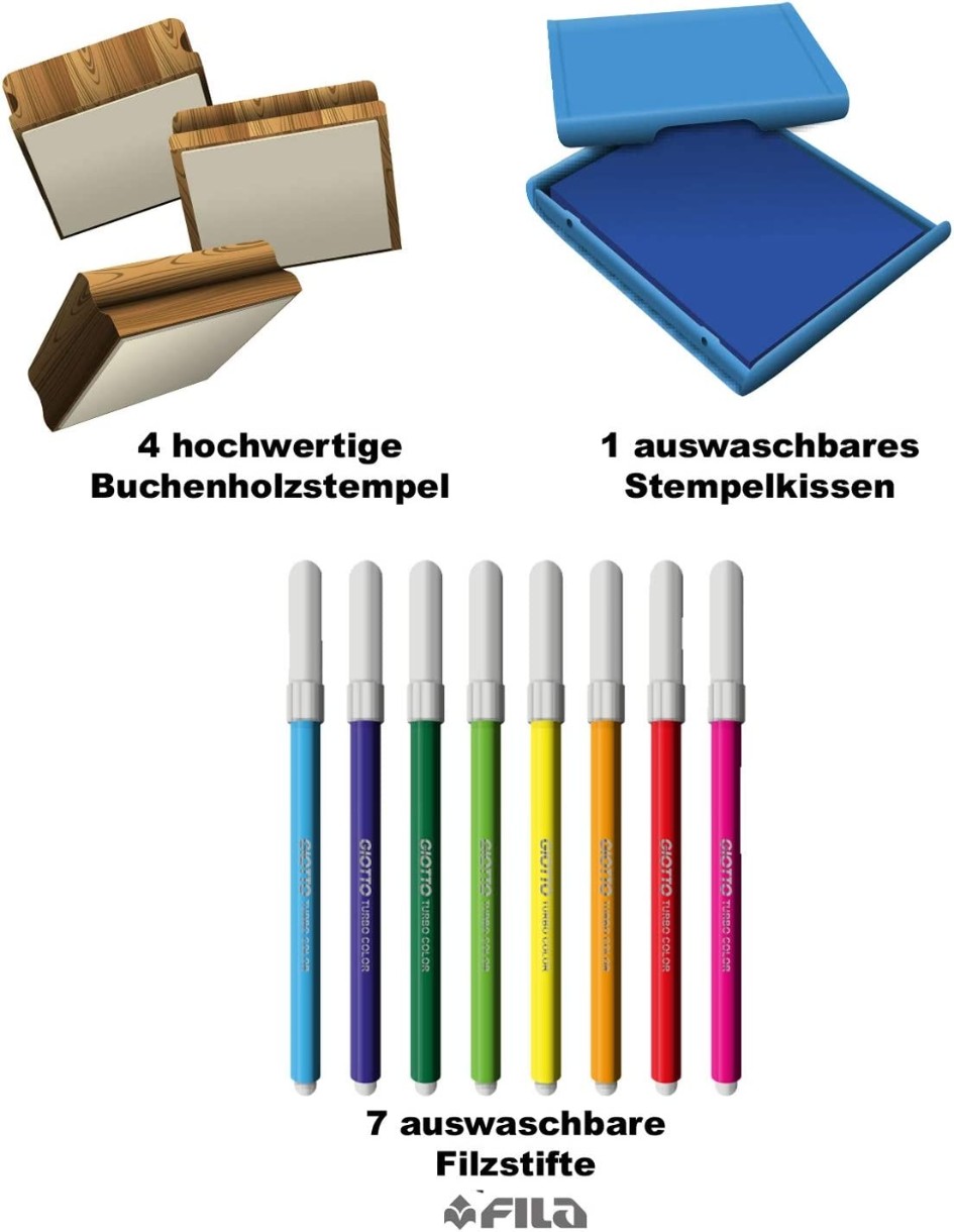 Комплектацияштампы, чернильная подушечка, фломастеры