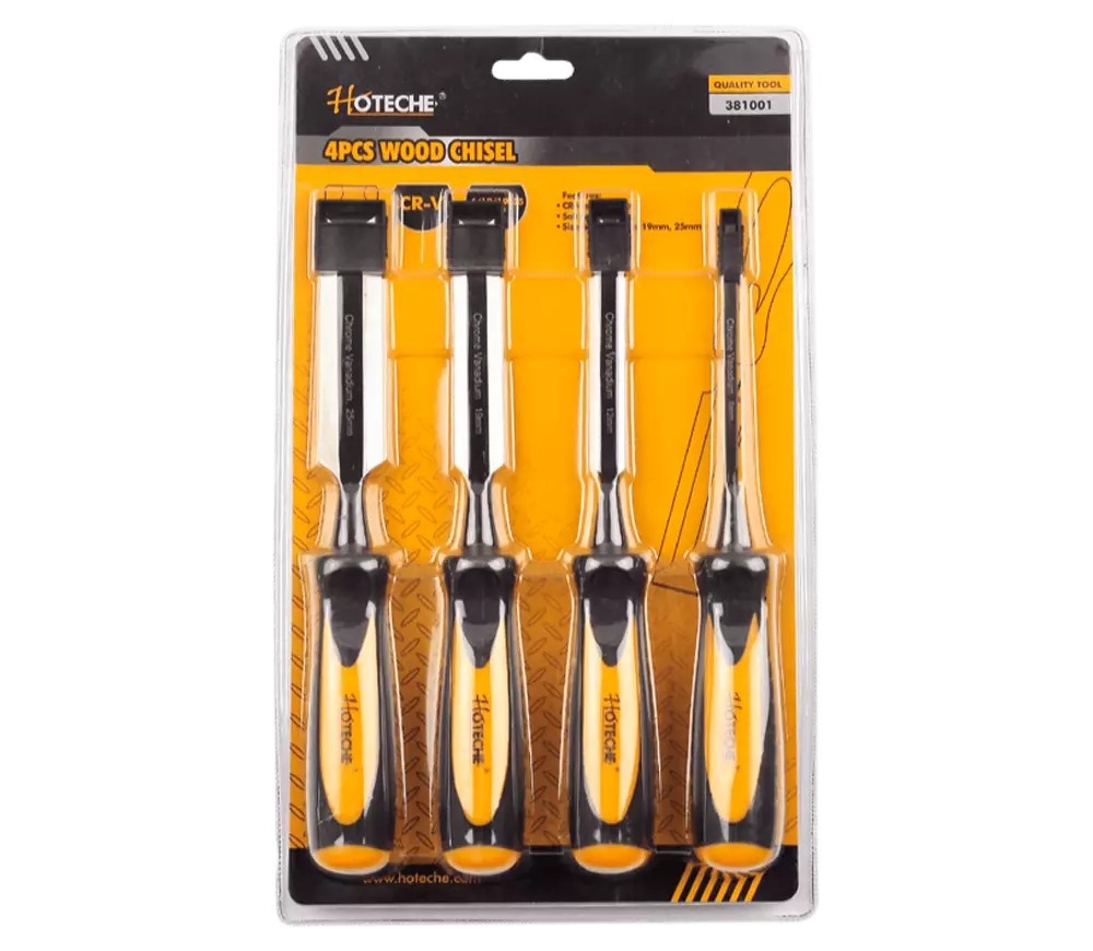 Набор состоит из четырех стамесок шириной 6, 13, 19 и 25 мм, предназначенных для столярных работ. Используются при выборке в углублениях, снятия фаски, при подрезке, подгонке деталей и обработке различных изделий. Стамески изготовлены из высококачественной инструментальной стали. Рукоятки сделаны из двухкомпонентного пластика.