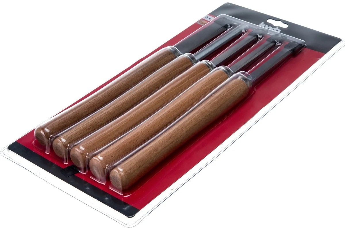 Набор стамесок KWB 49455250 5шт применяется для обработки древесины на токарных станках. Лезвия изготовлены из инструментальной стали. Поверхности резцов отшлифованы и отполированы. Рукоятки выполнены из натурального вощеного бука. Количество резцов в наборе — 5 шт.
