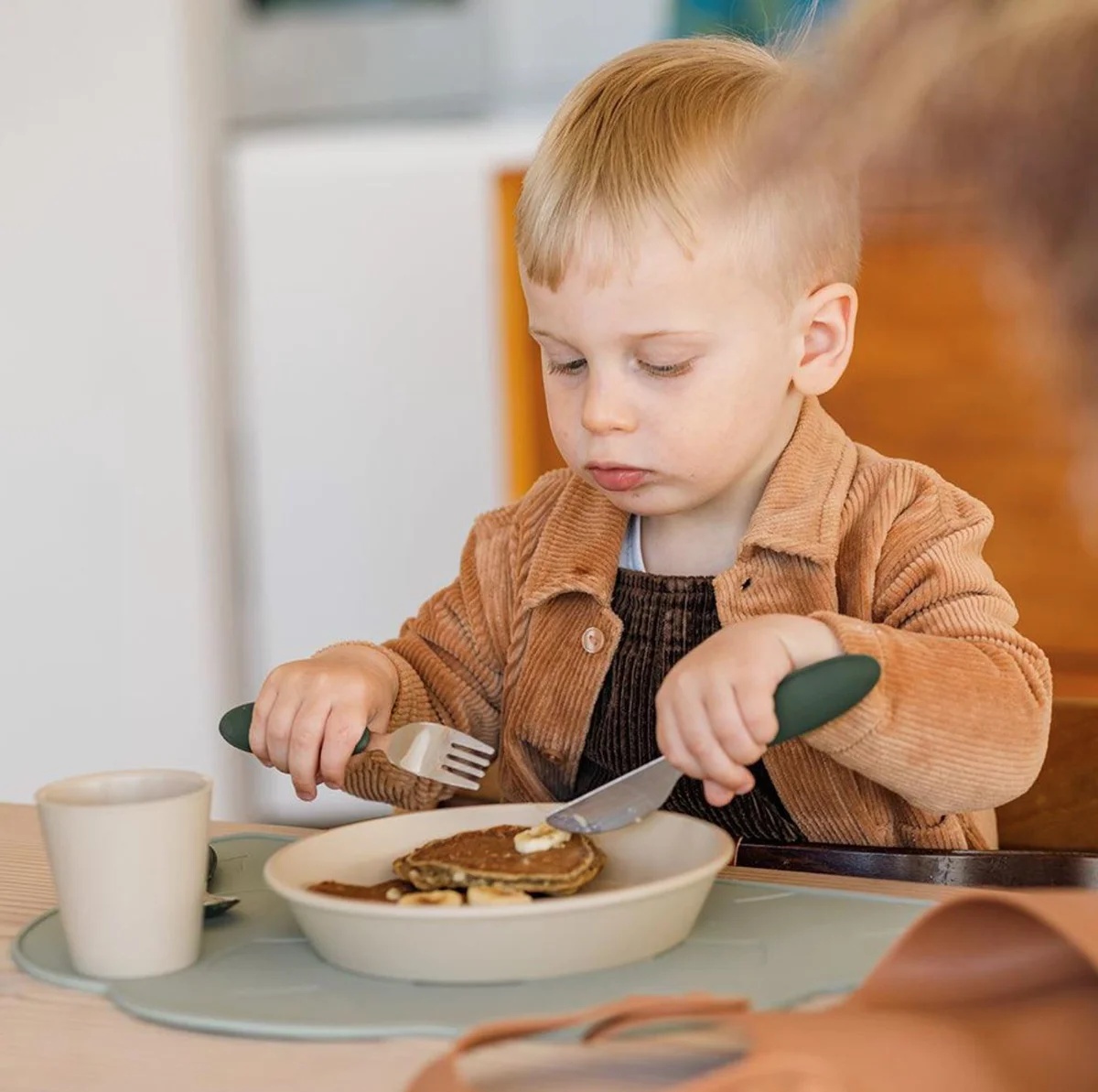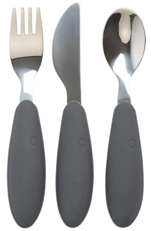 Набор столовых приборов BIBS идеально подходит для малышей, которые хотят научиться есть самостоятельно. Состоит из трех частей: вилки, ножа и ложки.