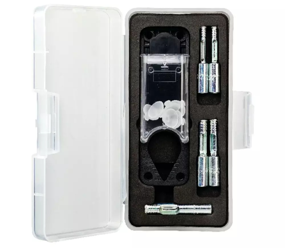 Набор сверл по керамической плитке с системой подвода воды DEWALT DT6046-QZ алмазное трубчатое 5 шт. пластиковый бокс Сверление с подачей воды – это способ увеличения скорости сверления и продления срока службы сверла! Технические характеристики: Тип оснастки: сверло Материал обработки: кафель, стекло, керамика Длина, мм: 55 Рабочая длина, мм: 30 Тип хвостовика: цилиндрический Материал изготовления: сталь Материал покрытия: алмазное напыление Особенности: Полый ствол Количество изделий в упаковке, шт.: 5 Комплектация: Набор сверл 5, 6, 7, 8, 10 мм, пластиковый бокс.