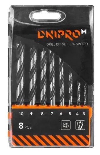 Набор состоит из 8 сверл по дереву. Упакованы в многоразовый удобный коробок. Сверла предназначены для сверления отверстий вдоль и в поперёк волокон древесины разных пород, клеевых и фанерных щитах, ДСП, ДВП.