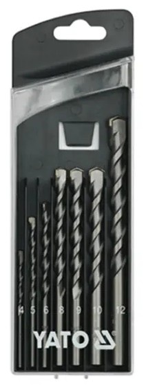 Сверла по бетону YATO YT-4390 4, 5, 6, 8, 9, 10, 12 мм. 7шт - Сверла предназначены для сверления в граните, бетоне, кирпичной кладке, силикатном кирпиче, природном и искусственном камне. Каждое сверло оснащено специальным центрирующим острием для эффективного засверливания в бетоне. Изготовлено из долговечного твердого сплава с мелкой зернистостью, что обеспечивает исключительную долговечность и максимальную износостойкость. Две режущие кромки с алмазной заточкой обеспечивают более эффективное сверление бетона.