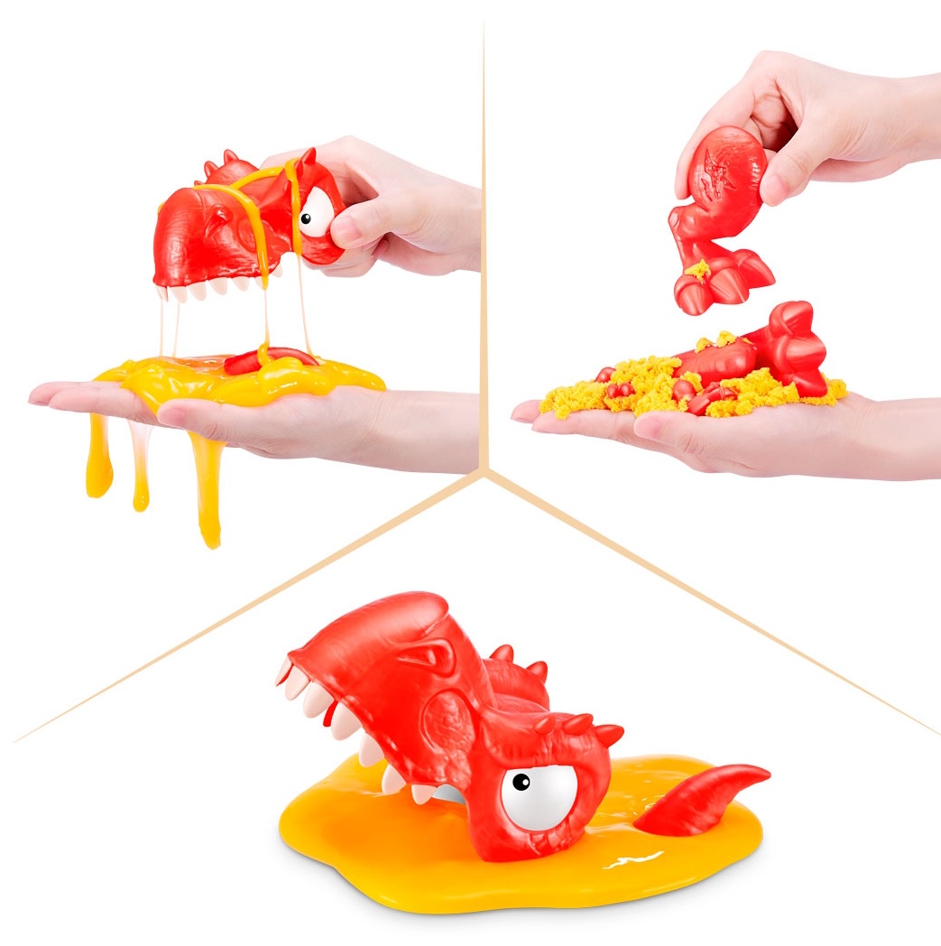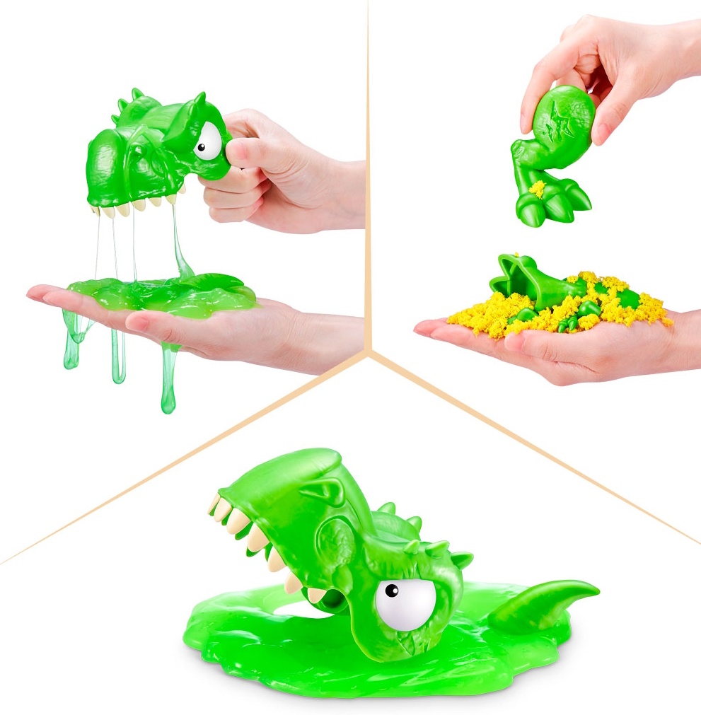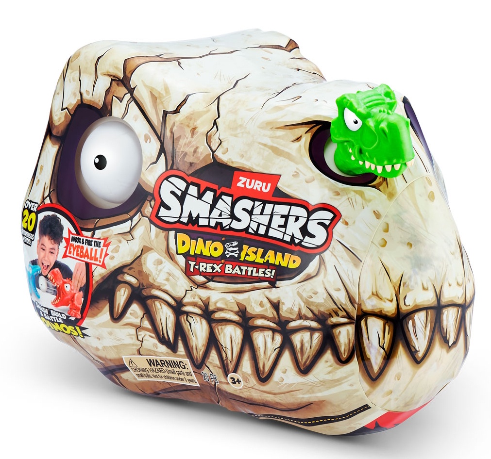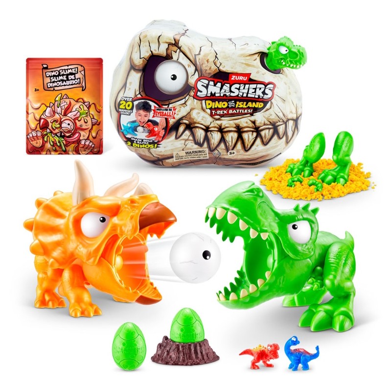 Вы готовы к решающей битве динозавров? Копайтесь в песке и слизи, чтобы найти все части окаменелостей, а затем соберите их, чтобы оживить скелеты! Закрепите светящееся глазное яблоко в пасти одного динозавра и нажмите на кнопочку управления хвостом, чтобы увидеть, как он взрывает другого. В наборе Smashers Dino Island Mini T-Rex Battles Playset вас ждёт более 20 сюрпризов: вы будете разбивать, строить и сражаться!
