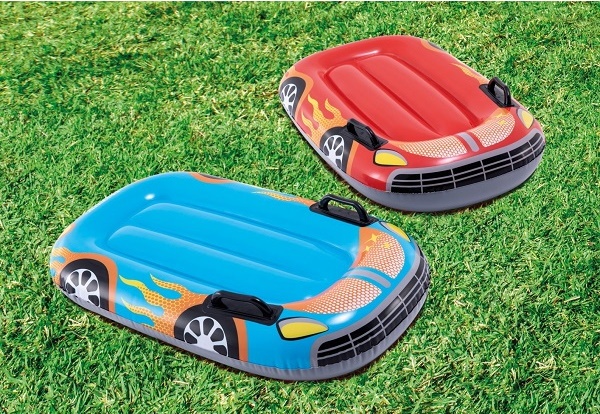 Горка комплектуется двумя надувными сёрфами. Зона скатывания для безопасности ограждена надувными бортами. Изготовлена из высокопрочного винила толщиной 0,4 мм. Рассчитана на нагрузку до 100 кг.
