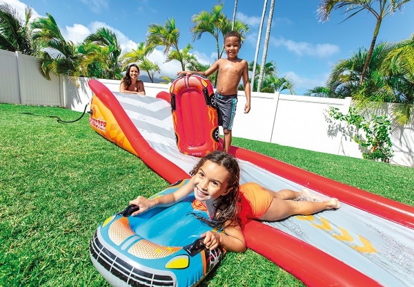 Надувная водная горка «Гоночная трасса», 561×119×76 см (Intex 57167).