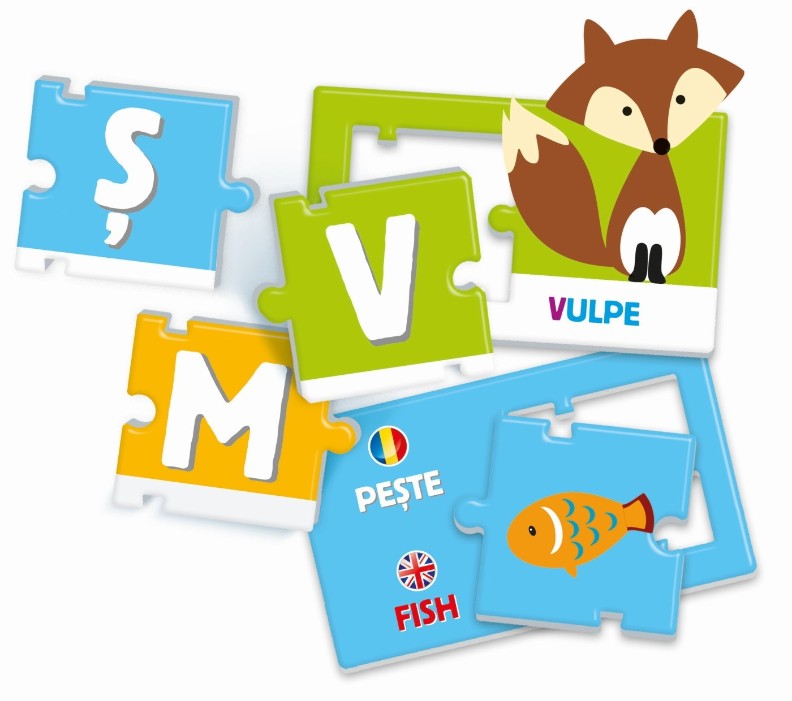 Алфавит – развивающая игра, специально разработанная для детей от 3 лет. Содержит иллюстрированные карточки с животными и буквами для первого знакомства с алфавитом в приятной и увлекательной форме, изучения букв и их звучания. Игра побуждает ребенка написать первые слова на румынском и английском языках. В наборе 30 карточек с картинками и словами, 30 деталей-пазлов и 1 инструкция. Развиваемые ценности: чтение и письмо, логика и наблюдательность, иностранный язык, самостоятельность, коммуникабельность, моторика, память, творчество и фантазия. Все игры Агерино были разработаны специалистами в области педагогики и психологии и апробированы в школах.