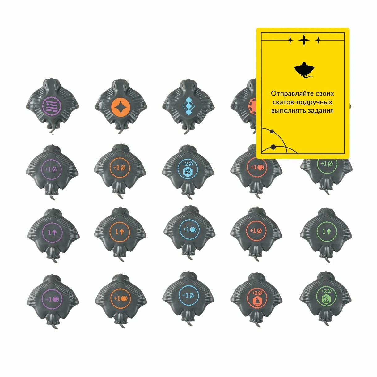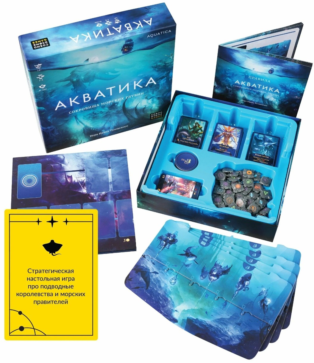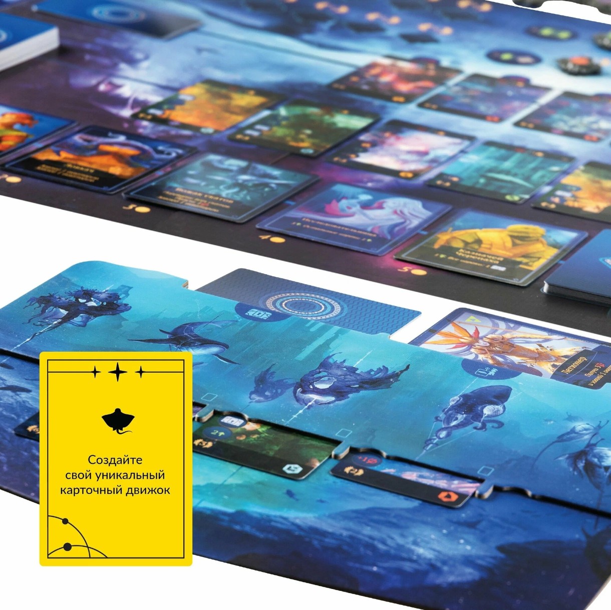 В процессе игры вы будете пополнять свою колоду, встречая загадочных океанских существ. С их помощью вы исследуете неизведанные локации и поднимете найденные ресурсы с глубин океана в своё королевство. В игре это действие представлено инновационным трехуровневым планшетом и уникальным механизмом подъёма карт.Игра подойдет как игрокам среднего уровня, так и любителям сложных настолок: правила просты в объяснении, а наличие многочисленных комбо порадует любителей размять мозги продуманной стратегией.