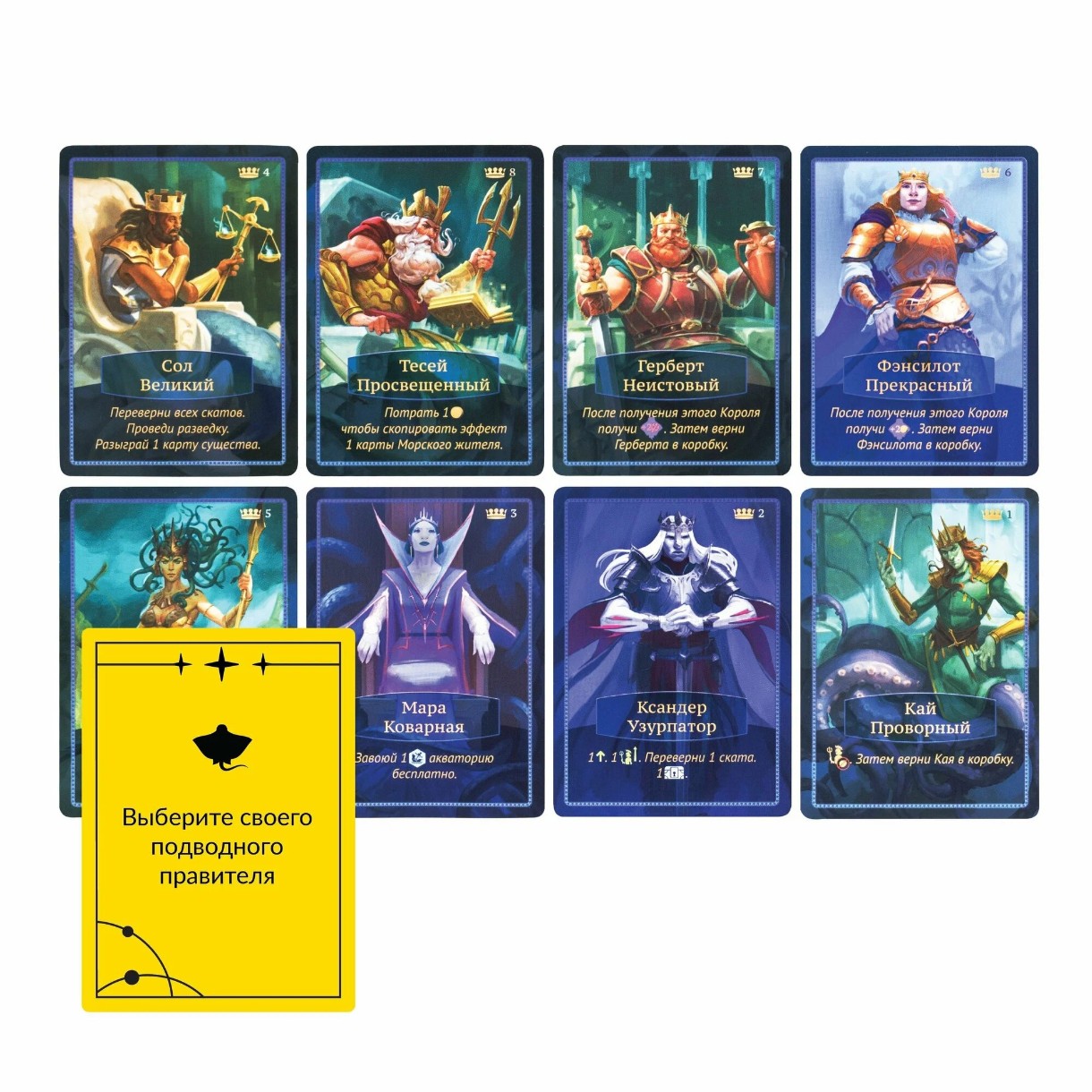 Таинственные воды Мирового океана скрывают неизвестные формы жизни и удивительные цивилизации. Правители морей, каждый из которых мечтает прославить своё королевство, ведут борьбу за спрятанные в подводных глубинах ресурсы. Станьте одним из морских королей и на 50 минут погрузитесь (pun intended!) в загадочный мир океана! Чтобы выиграть, вам нужно захватывать локации, нанимать поданных и выполнять цели — каждое из действий даёт победные очки.