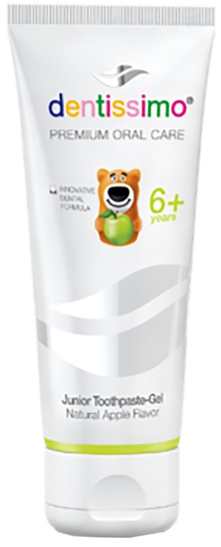 Зубная паста была разработана специально для детских зубов, в основе – натуральные ингредиенты. Яблочный вкус зубной пасты делает процедуру чистки зубов приятной. Это вырабатывает у детей навыки ухода за полостью рта. Зубная паста предотвращает развитие кариеса, укрепляет и возобновляет зубную эмаль. Благодаря фтору, кальцию и витаминам, которые входят в состав, она укрепляет зубы, и защищает чувствительные ткани десен. Приятный вкус зубной пасты помогает детям соблюдать ежедневные правила гигиены полости рта. Детская зубная паста "Dentissimo Junior" помогает предотвратить кариес и делает детские зубы крепкими и здоровыми. Здоровье полости рта это здоровье всего организма!