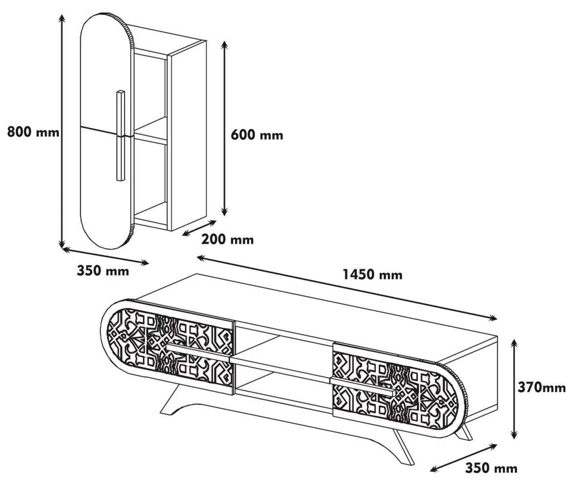 Эта мебельная композиция не только визуально привлекательна, но и очень функциональна. Настенная полка размером 35 см x 60 см x 20 см предоставляет дополнительное пространство для книг, растений или декоративных предметов. Композиция легко крепится к стене, обеспечивая максимальную безопасность и устойчивость.