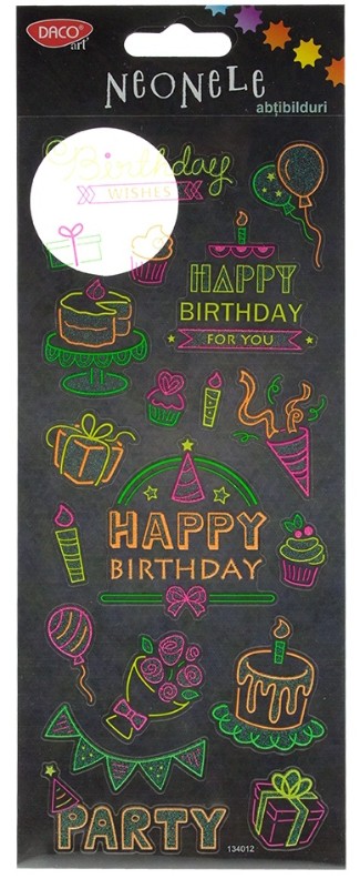 Добавьте блеска и красок в ваш праздник с наклейкой «Happy Birthday Neonele» от DACOart! Эти неоновые фольгированные наклейки идеально подходят для персонализации и украшения поздравительных открыток, украшений или любого другого особого мероприятия ко дню рождения. Благодаря яркому и насыщенному дизайну, наклейки добавят праздничного и очаровательного эффекта, идеально подходящего для необычного празднования.