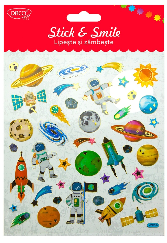 Отправьтесь в увлекательное путешествие в космос с наклейкой Cosmos Stick and Smile от DACOart! Эти фольгированные наклейки идеально подходят для придания вашим проектам космического и таинственного оттенка. Космические дизайны с планетами, звездами и созвездиями добавят очаровательного и оригинального визуального эффекта и идеально подойдут для персонализации блокнотов, ежедневников, поздравительных открыток и других творческих объектов.
