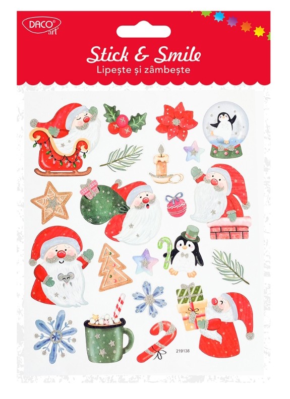 Почувствуйте праздничное настроение с наклейками Stick and Smile от DACOart, которые идеально подходят для персонализации ваших вещей и придания праздничного настроения вашим проектам.