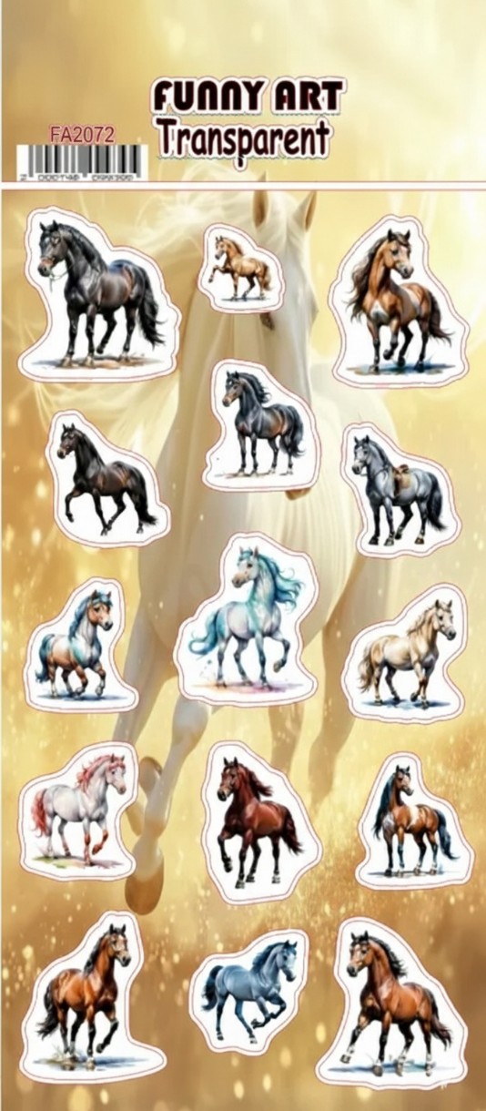 Наклейки Funny Art FA2072 с лошадьми- отличный выбор для творческих проектов с изящными и вдохновляющими мотивами! Эти прозрачные стикеры с изображениями красивых лошадей придают работам особую элегантность и выразительность-будь то украшение тетрадей, открыток, фотоальбомов или других DIY-идей. Благодаря прозрачному фону изображения органично смотрятся на любой поверхности, без белых краёв. Лёгкие в использовании, они предлагают множество деталей и сцен, которые вдохновят как детей, так и взрослых в творчестве. Добавьте шарма и динамики своим работам с этими наклейками с лошадьми!