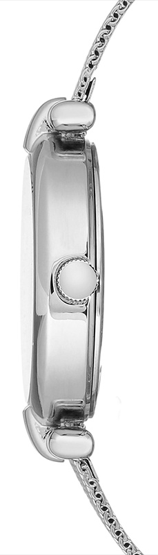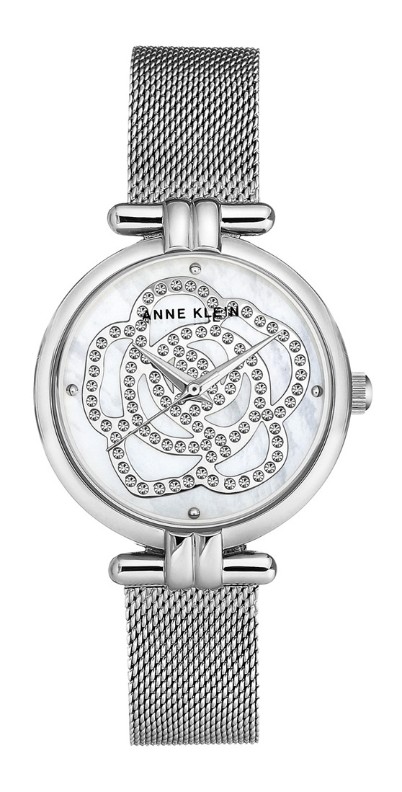 Циферблат с цветочным орнаментом часов Anne Klein закрывается изящным тонким серебряным корпусом, который аккуратно смотрится на женской руке. В часах используется классический браслет из очень мелких звеньев, подчеркивающий их элегантный, шикарный вид.