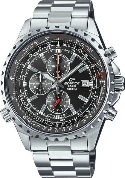 Перед вами редкая лимитированная модель 2021 года — харизматичная и крайне необычная новинка Edifice из серии EF-527 в стальном корпусе с зеленым аналоговым циферблатом с красными деталями и зубчатым стальным безелем! В часах присутствует две подзаводные головки и круговая логарифмическая шкала, с помощью которой, вы сможете быстро перевести мили в километры, галоны в литры, фунты в килограммы, а также произвести другие необходимые расчеты. Помимо специфичных возможностей, в часах вы найдете секундомер и отображение текущей даты. Как и все эдифайсы часы водонепроницаемы, а циферблат защищен закаленным минеральным стеклом. Напоминаем, что серия EF — это младшая серия в коллекции Edifice, в которой вы сможете найти стальные часы на каждый день. Модели серии EF, несмотря на свою доступность, обладают отличным современным дизайном, что обеспечивает огромную популярность серии среди сотен тысяч людей по всему миру!