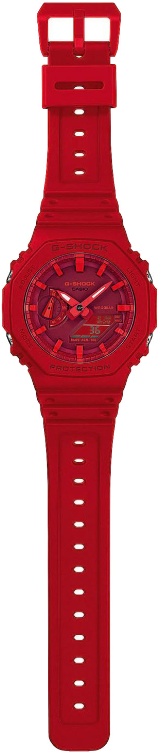 Перед вами релиз 2019 года в новом корпусе GA-2100 с безелем в форме октагона. Модель отличается среди других джишоков своей легкостью, компактностью и толщиной корпуса всего в 11.8 мм! Это стало возможным благодаря технологии Carbon Core Guard: модуль часов защищает легкий и сверх-прочный полиуретановый корпус с углеродным армированием, а циферблат покрыт закаленным минеральным стеклом. Часы выполнены в яркой полностью красной расцветке, что несколько сказывается на ее эргономике, но создает узнаваемый сверх стильный внешний вид. Еще одна особенность часов — обновленное крепление ремешка, теперь его смена займет у вас всего несколько секунд.