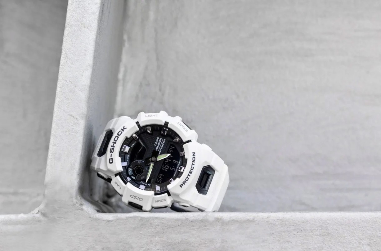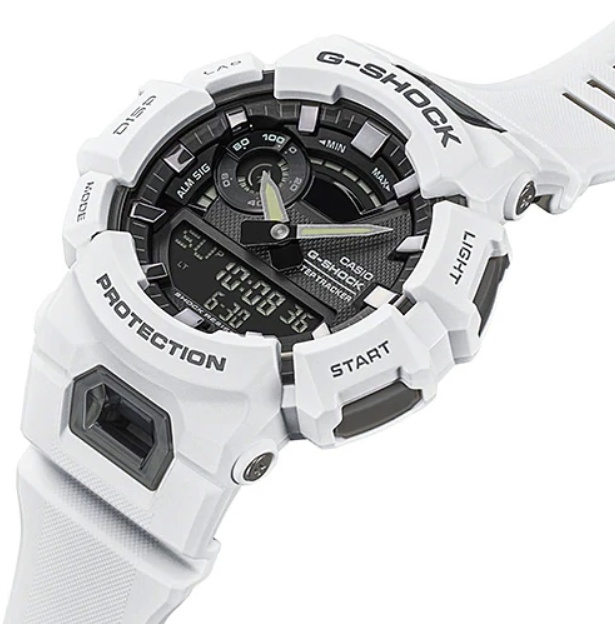 Свежий релиз 2021 года — обновленная модель G-Shock со спортивным характером из аналого-цифровой серии GBA-900. В дизайне модели прослеживается неуловимая визуальная эстетика 90-х годов, что добавляет ей особого шарма в глазах тех, кто помнит первые кассетные плееры SONY и двухкассетники SHARP. Мы в редакции G-STORE RUSSIA любим и ценим подобные визуальные отсылки во внешнем виде к уличной культуре конца двадцатого столетия. Помимо обновленного внешнего вида, данная модель в белом корпусе с черным циферблатом обладает функцией шагомера и способна отслеживать вашу дневную активность, а с помощью технологии Bluetooth® часы способны синхронизироваться с вашим смартфоном и дополнительно отображать все метрики дневной активности в приложении на смартфоне в максимально удобном и наглядном виде. Также часы способны отображать уведомления о входящих звонках и сообщениях. Часы обладают многофункциональным таймером, который можно использовать для интервальных тренировок. Настроить интервалы таймера и звуковых сигналов теперь можно в удобном виде через приложение G-Shock Move на смартфоне и запустить эту программу на часах во время тренировки. С помощью шагомера измеряются и беговые показатели: длина дистанции, темп и количество сожженных калорий. Обособленная кнопка DISP слева на корпусе позволяет быстро переключаться между режимами индикации той или иной информации на дисплеях часов.